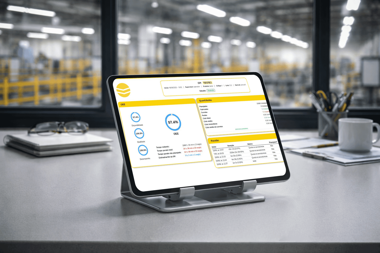 Chega de perder tempo anotando. Nosso dispositivo registra produção e paradas com a confiabilidade que sua fábrica precisa.